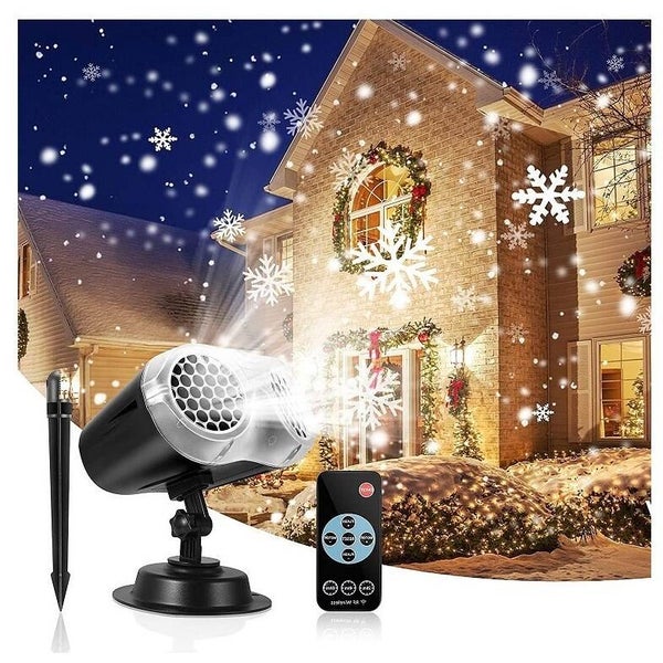 Ο Αδιάβροχος Διπλός Προτζέκτορας Led Νιφάδες Χιονιού με Τηλεχειριστήριο μπορεί να προβάλει μεγάλες νιφάδες χιονιού + μικρές νιφάδες χιονιού + λευκές κηλίδες χιονιού μαζί για να σχηματίσουν ένα εφέ χιονοθύελλας για να δημιουργήσουν μια ρεαλιστική σκηνή χιονόπτωσης.
