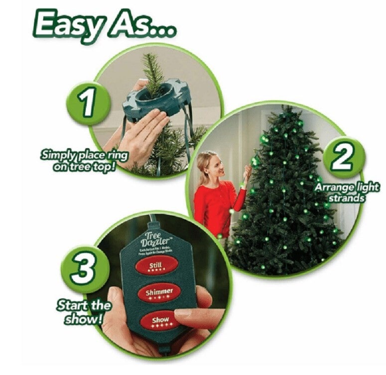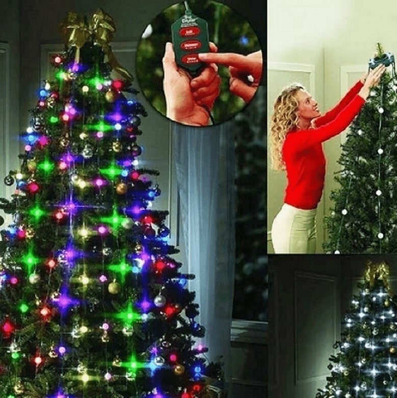 Τα χριστουγεννιάτικα λαμπάκια αποτελούνται από 64 φωτάκια LED. Είναι πολύ εύκολα στην τοποθέτηση αφού το μόνο που έχετε να κάνετε είναι να τοποθετήσετε το κυκλικό τμήμα στην κορυφή του δέντρου και τοποθετήστε τα κάθετα καλώδια με τις λάμπες ανάμεσα από τα κλαδιά του δέντρου. Διαθέτει με την βοήθεια του Κοντρόλ 3 επιλογές φωτισμού: Σταθερό φως, φως που αλλάζει χρώμα αυτόματα, και επιλογή χρώματος. Είναι κατάλληλο για δέντρα από 1.8 μέτρα μέχρι 2.2 μέτρα.